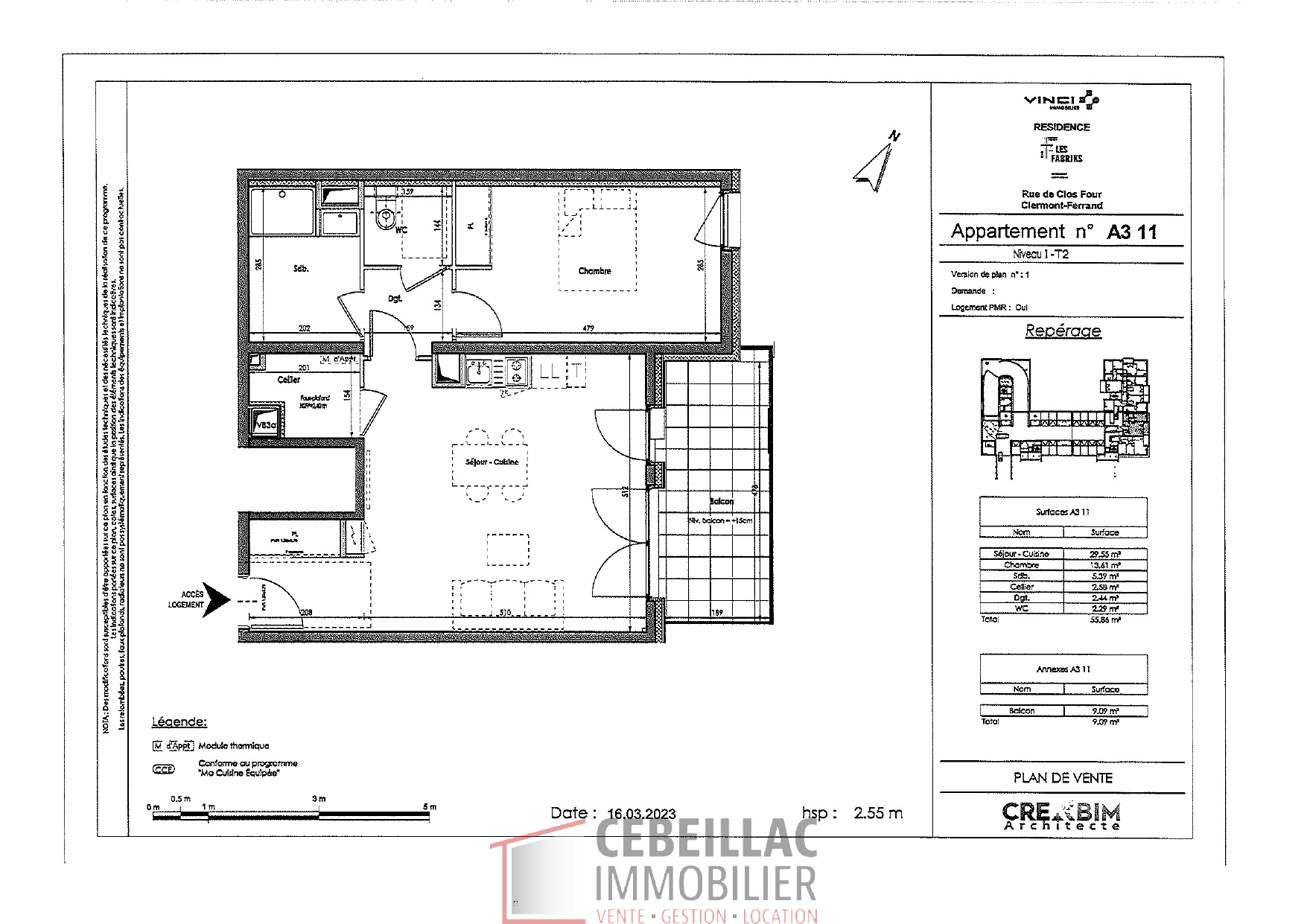 Clermont-Ferrand (63100)MR-CDC-86 - 43 rue du clos four à Clermont Ferrand, dans la résidence récente Les Fabriks de Mai. Situé entre la place du 1er Mai et le stade Marcel Michelin, appartement de type 2 de 56 m² habitables au 1er étage avec terrasse. Il comprend une entrée avec placard, un séjour ouvert sur cuisine aménagée, un cellier, une chambre avec placard ainsi qu'une grande salle d'eau, et un wc indépendant. Chauffage collectif. Un garage complète ce bien. Le loyer charges comprises est de 697.73 euros. Le loyer hors charges est de 574.04 euros. La provision sur charges est de 123.69 euros et comprend l'eau froide, l'eau chaude, le chauffage ainsi que l'entretien et l'électricité des parties communes, et la taxe des ordures ménagères. Dépot de garantie : 574.04 euros. PAS DE FRAIS D AGENCE. Plafonnement de ressources LLI. Les informations sur les risques auxquels ce bien est exposé sont disponibles sur le site Géorisques : www.georisques.gouv.fr. Vous pouvez retrouver tous nos biens à la location sur notre site immobilier www.auvergneimmobilier.com - A311