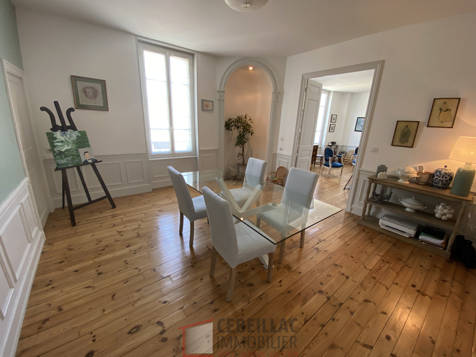 Clermont-Ferrand (63000)MC1031 : Pour AMATEUR de CARACTERE ANCIEN, superbe type 6 dans le quartier des CARMES, à côté du tramway et des commodités, d'une surface habitable de 138m² (loi Carrez), TRAVERSANT et HYPER FONCTIONNEL, Il a gardé beaucoup de charme (parquet, cheminée, hauts plafonds). Au 2°étage sans ascenseur, il comprend une double réception, une cuisine entièrement équipée, 4 chambres au calme dont une suite parentale, une salle de bain et une salle d'eau, 2 WC et une buanderie. Chauffage individuel au gaz. TRES BONNE ISOLATION THERMIQUE et PHONIQUE (murs doublés intérieurement, plafonds doublés). Notons également la présence d'une cave de 30m² et une cave à vin. Petite copropriété CALME de 7 appartements. Les charges mensuelles sont de 146 €. La taxe foncière est de 1945 €. Pas de procédure en cours. Les informations sur les risques auquel ce bien est soumis sont disponibles sur le site georisques : www. georisques.gouv.fr. Le prix de vente est de 332 800 € dont 4 % ttc d'honoraires d'agence à la charge de l'acquéreur. Vous pouvez retrouver tous les biens à la vente et le barème des honoraires de Cebeillac Immobilier, 8 bis cours Sablon à Clermont-Fd (63) sur le site internet de l'agence.