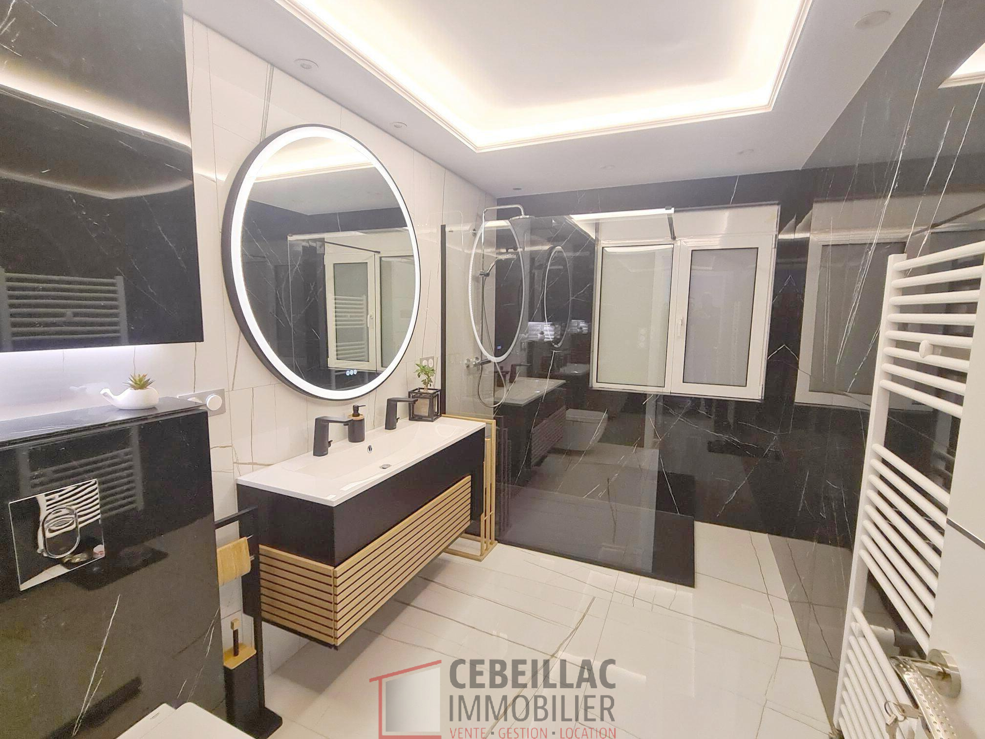 Cébazat (63118)CC 1206 - Proche de Clermont Fd, de Riom, se trouve Cébazat,.Située dans un environnement résidentiel calme et recherché. Cette maison de caractére saura vous séduire par son allure, ses prestations de qualité et son cadre de vie privilégié. Edifiée sur un beau terrain clos, arboré et soigneusement entretenu, cette propriéte de 126m² habitables offre un cadre de vie idéal pour une famille en quête de confort et tranquilité Entiérement rénovée en 2023 avec des matériaux hauit de gamme, elle est habitable immédiatement sans travaux à prévoir. Elle est proche des commerces, écoles, et transports en commun. Son agencement est de 5 pièces sur 126m² habitables sur 2 niveaux. Construite en 1985, elle est en 2023 entièrement restaurée avec des matériaux de qualité donnant un classement énergétique DPE " B " GES " A " grâce aussi à l'isolation renforcée et sa pompe à chaleur RO Mitsubischi. Taxes foncières : 1080€. Elle dispose au 1er étage d'une superbe pièce de vie lumineuse de 53m² avec une trés belle cuisine équipée haut de gamme, une chambre, une salle d'eau de standing avec wc. Au rez de chaussée trois grandes chambres, une salle d'eau avec wc. Une vaste cave. Tout au tour de la maison, jolie terrasse carrelée et son jardin en pelouse, arboré d'arbres fruitiers totalement clos. Pour les voitures, se trouve sur le coté de la maison une grande plateforme oû il est possble de créer un carport. Son prix de vente est de 379 000€ dont 8000€ charge acquéreur. Les informations auxquelles ce bien est exposé sont disponibles sur le site Géorisques : www.georisques.gouv.fr Vous pouvez trouver tous les biens à la vente et le barème des honoraires de l'agence CEBEILLAC-IMMOBILIER sur le site internet www.auvergneimmobilier.com
