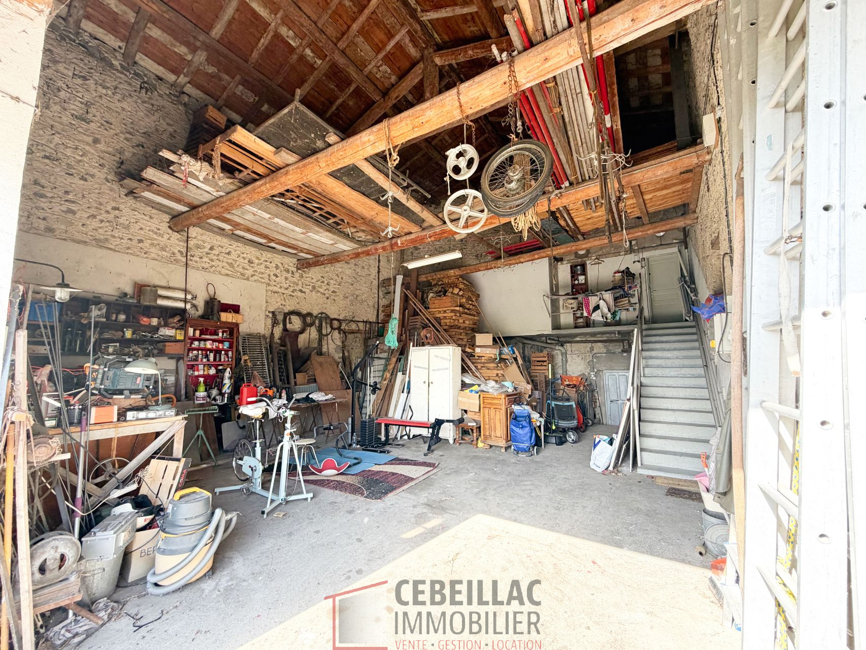 Enfin, au rez-de-chaussée, une grange saine et attenante à la maison, donne accès à de nombreux espaces fonctionnels : atelier, cave, chaufferie, vastes zones de stockage ainsi qu’un garage.
